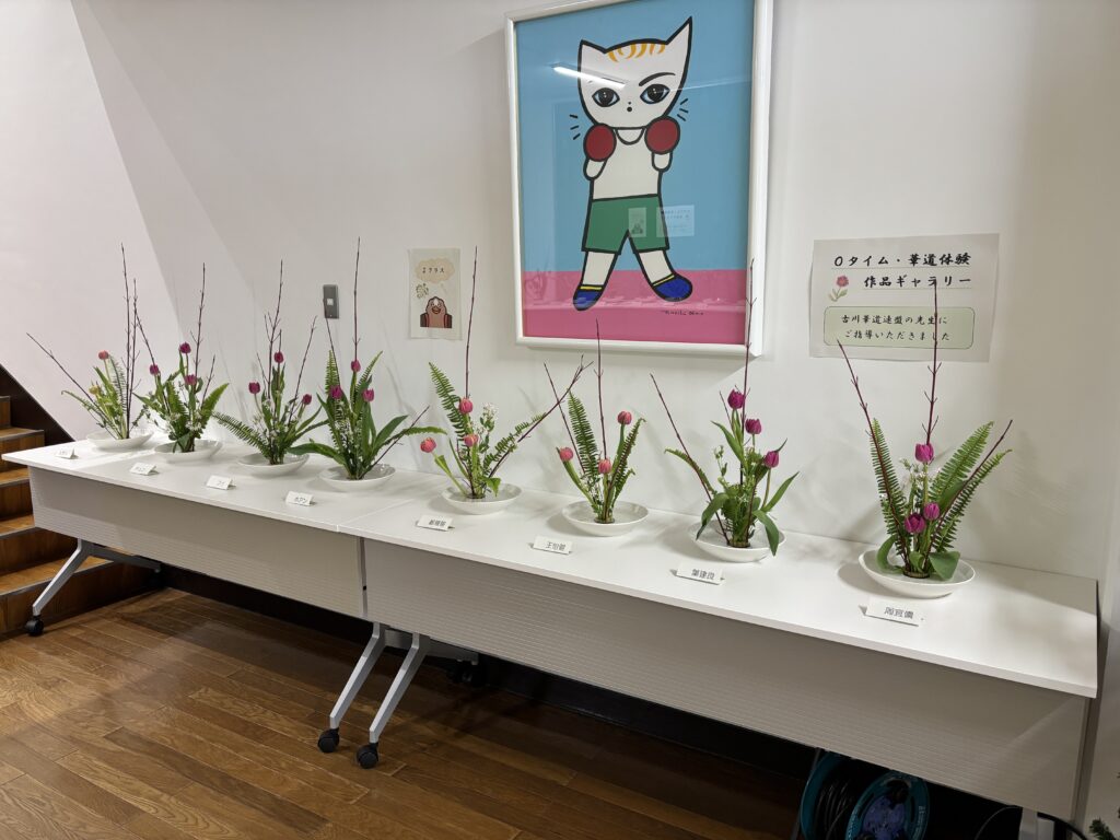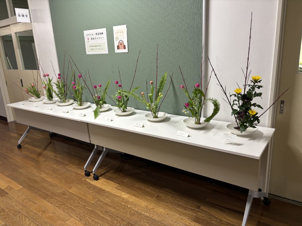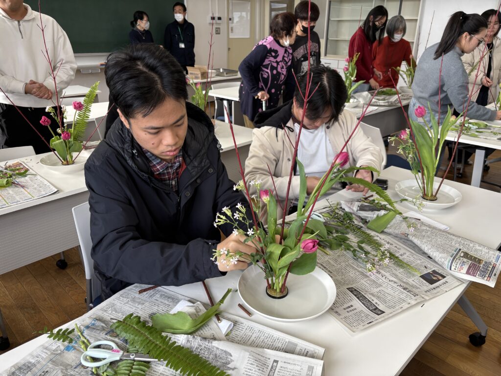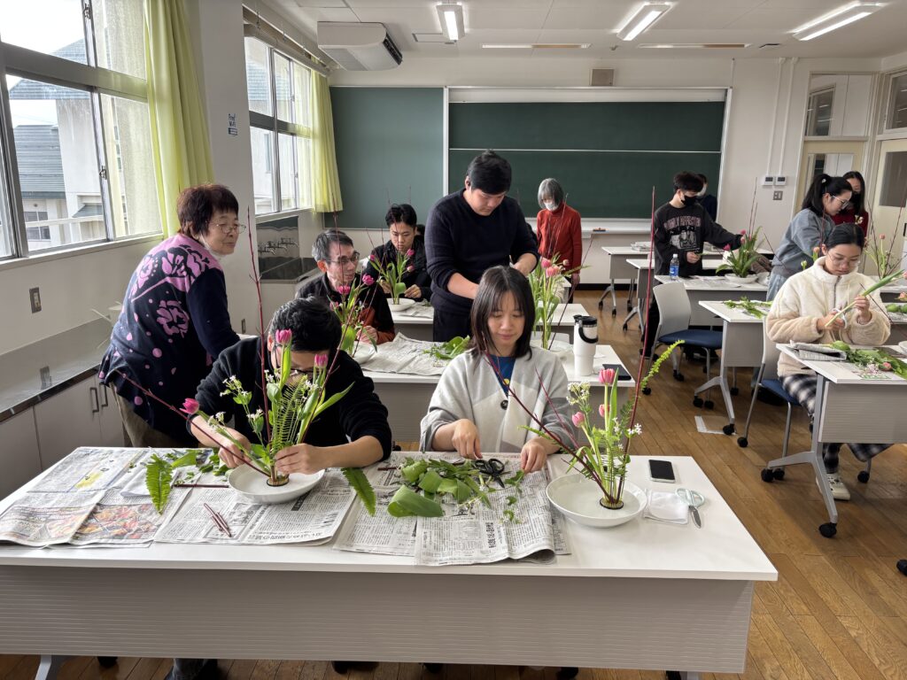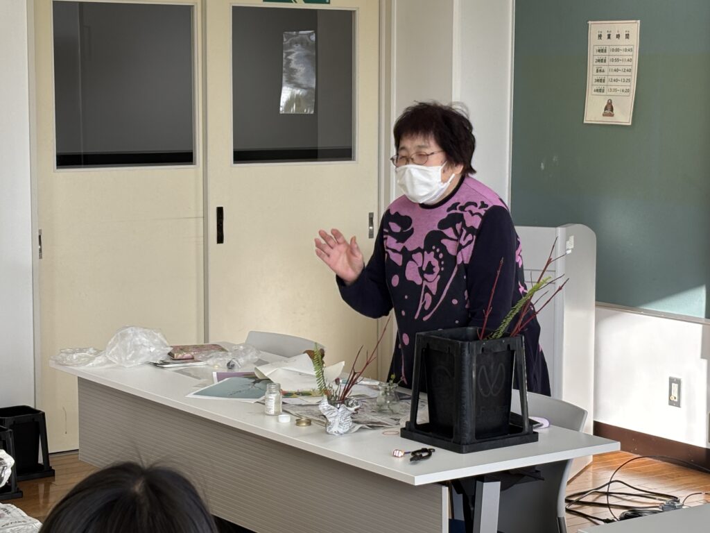 12月10日(水) 2クラス(進学2年課程)でOタイムの時間に華道体験をしました。今回の華道体験では,龍生派の大曾根花房先生と佐々螢翆先生に教えていただきました。