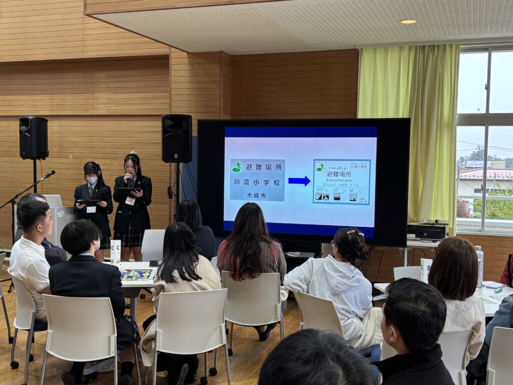 次に「避難所看板」を誰にでも(外国の人も)一目で分かるように工夫してきたグループが発表しました。