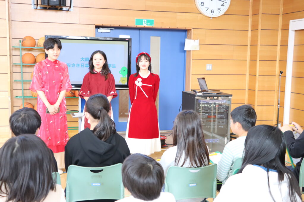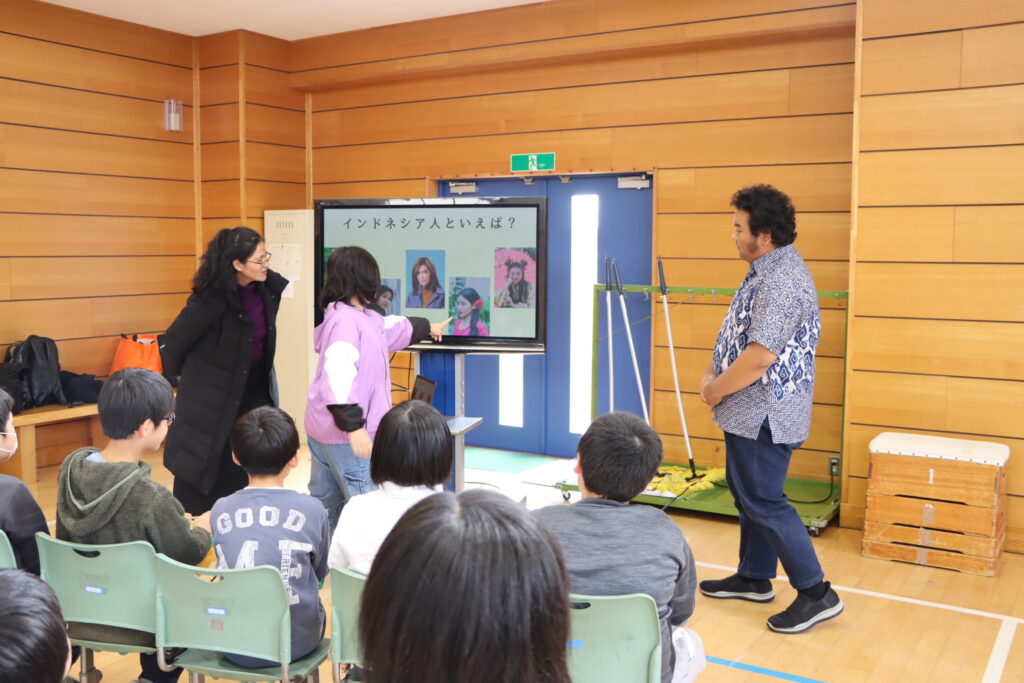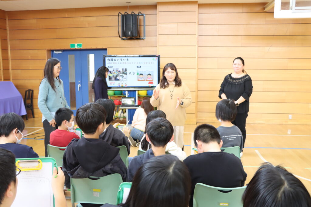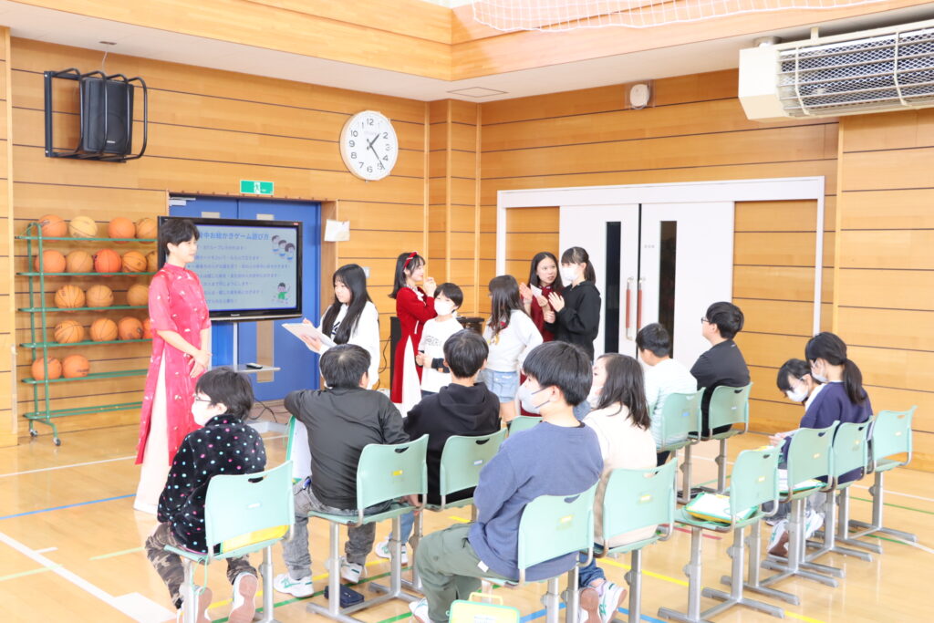 台湾班2組,ベトナム班1組,インドネシア班1組の4グループに分かれて,色麻学園5年生に,各国・地域の紹介をしました。紹介のはじめや途中・終わりにゲームなども入れて,楽しく交流ができました。