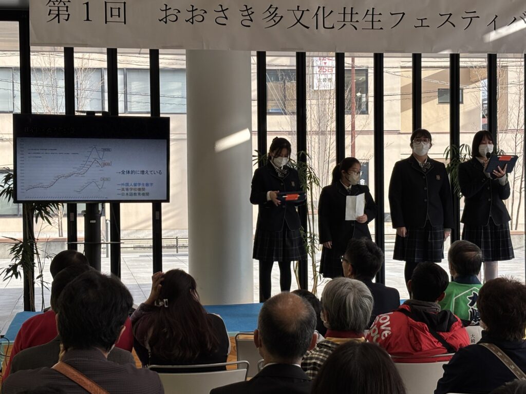 12月3日(水)総合的な学習の時間で「多文化共生」を探究している,古川高校1年生35名が来校し,進学1年6か月課程・進学2年課程の35名と交流しました。
